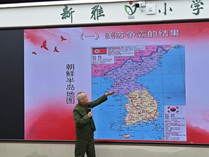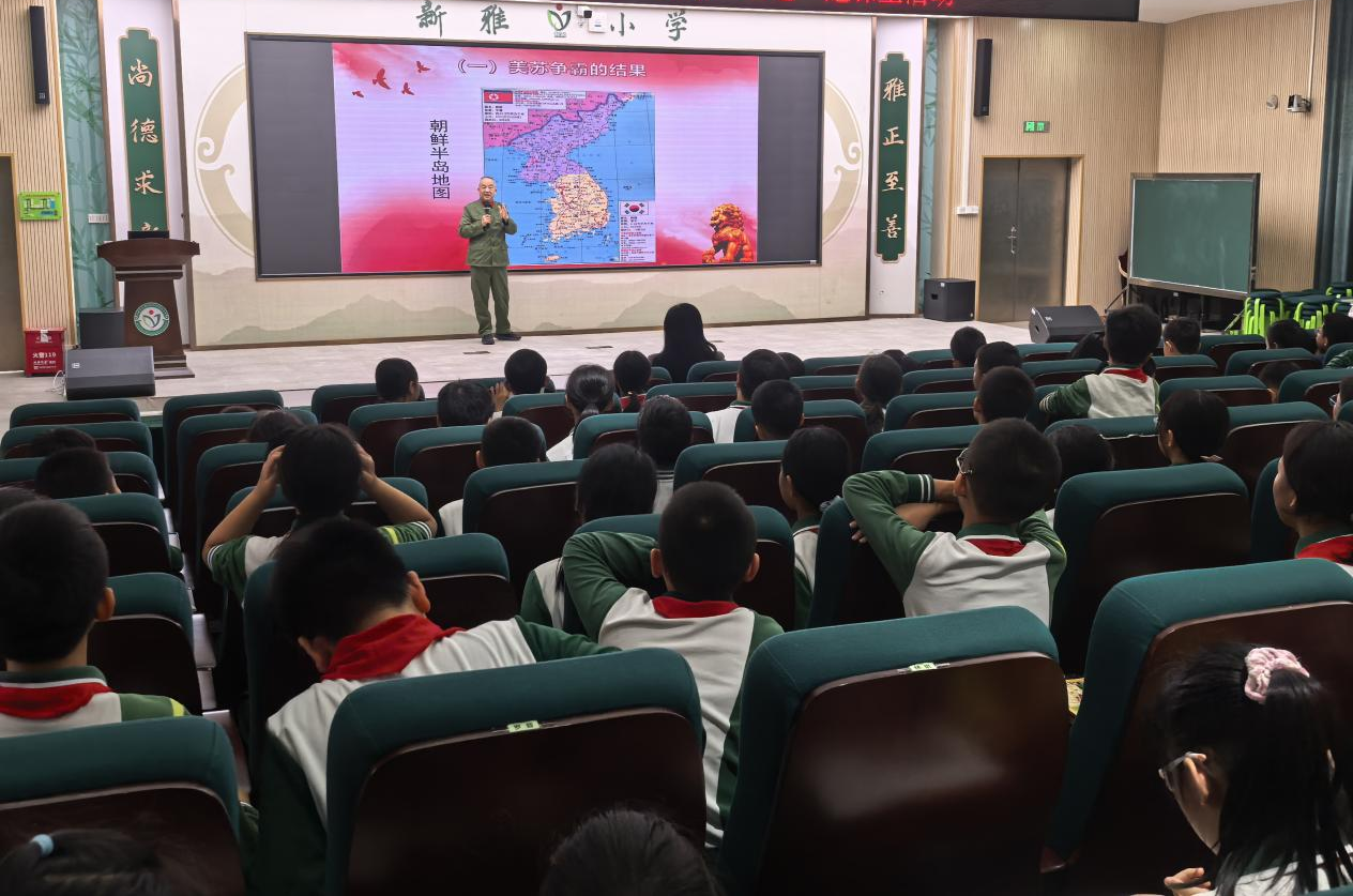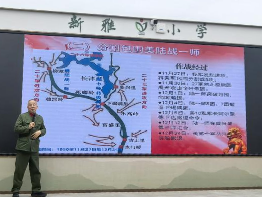 冬阳送暖,薪火相传;红色基因,生生不息。为厚植青少年爱国主义情怀,引导学生重温峥嵘岁月、铭记革命先烈,2025年12月19日,花都区新雅小学举办了爱国主义教育进校园主题活动。本次活动特邀新雅街关工委讲师团讲师、退役陆军上校刘武松带来《冰血长津湖》主题宣讲,200多名师生齐聚一堂,共赴一场深刻的红色精神洗礼。