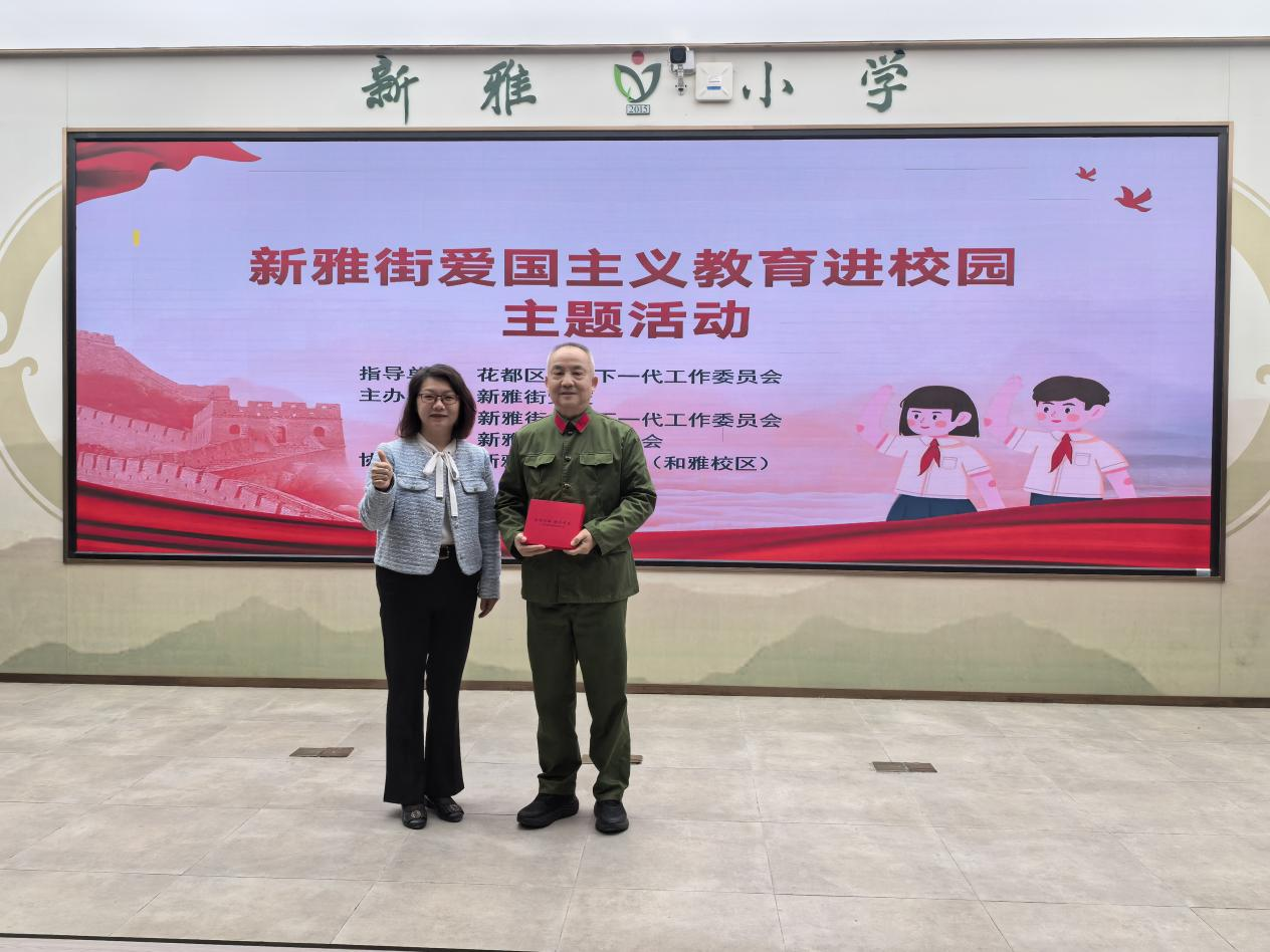 活动伊始,新雅小学吉庆燕校长为刘武松老师颁发了精心准备的纪念品,这份纪念品不仅承载着学校对刘老师的敬意,更象征着红色精神在师生间的传递与传承,为整场活动拉开了温馨而庄重的序幕。