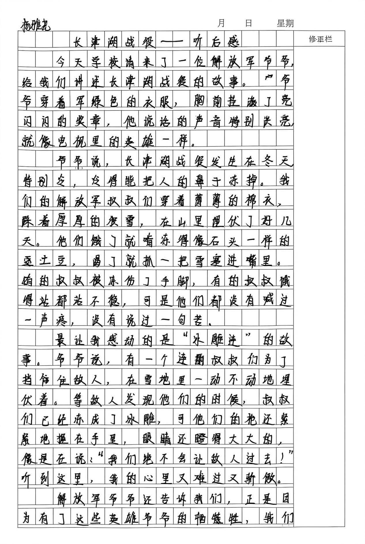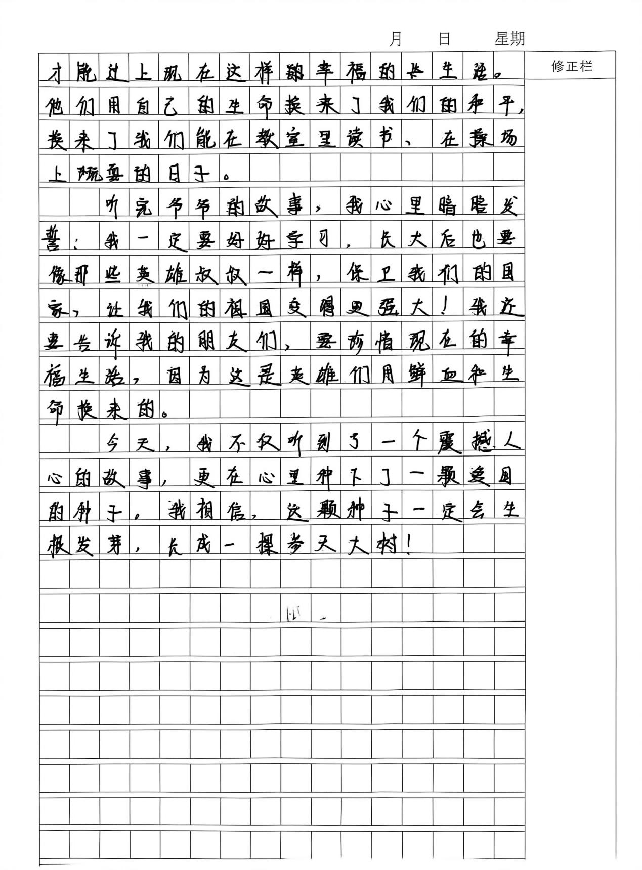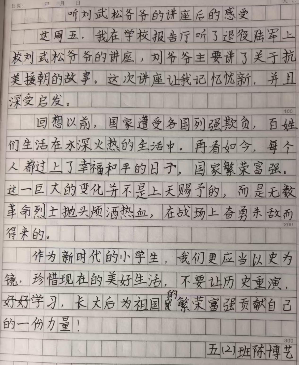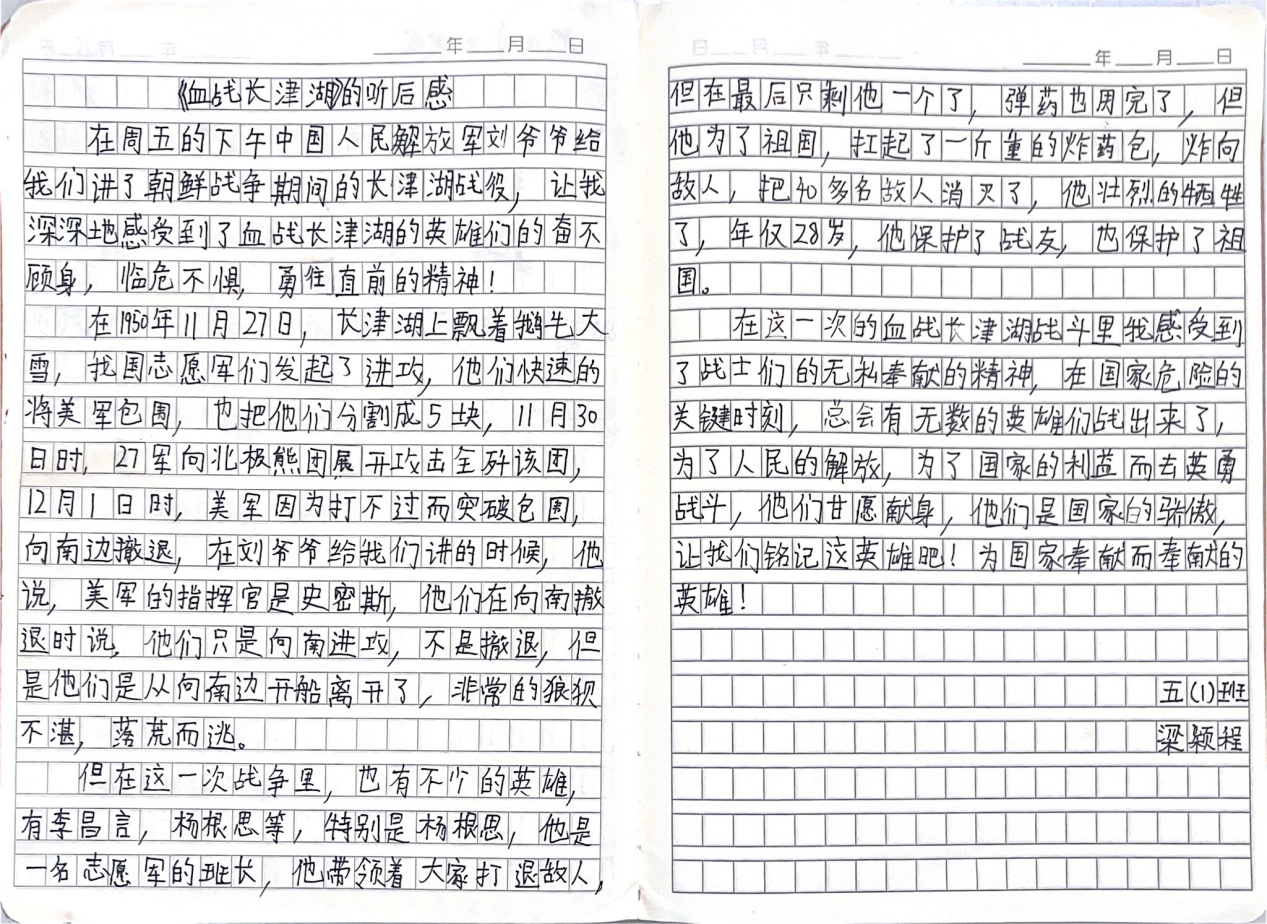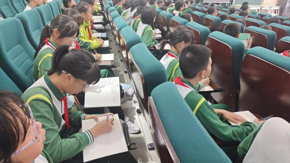 课堂上,同学们表现得格外专注。大家挺直腰板,睁大眼睛认真聆听,手中的笔记本记得密密麻麻。听到英雄们的牺牲事迹时,不少同学眼眶泛红,默默擦拭泪水。刘老师耐心科普当年长津湖战争的细节,让家国情怀深深扎根于孩子们的心中,这份发自内心的崇敬,展现了新时代少年对革命历史的敬畏之情。