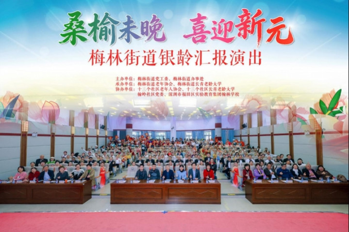 “温度服务”致力于满足老年人多样化、高品质的精神文化需求。梅林街道大力推动文体融合,不断拓展“老有所乐”的广度与深度。在趣味运动会中,文艺展演与体育竞赛交相辉映;在日常生活中,街道通过整合公共空间打造“十分钟健身圈”,依托长青老龄大学开设丰富多彩的课程。近期举办的《桑榆未晚喜迎新元》迎新年文艺汇演,更是这一理念的集中展现。数百名银发长者,通过舞蹈、合唱、走秀、非洲鼓等十六个精彩节目,展现了新时代长者昂扬的精神风貌和卓越的艺术才华。其中,梅河老协艺术团男声合唱节目《爱永在》,在2025年深圳市第二届“湾区乐龄”合唱艺术周深圳市第十六届“永远的辉煌”合唱艺术大赛中荣获银奖,成为街道支持培育的老年文化品牌。这些活动精准触达了老年群体对社交、学习、展示自我的深层渴望,让晚年生活充满色彩与成就感。